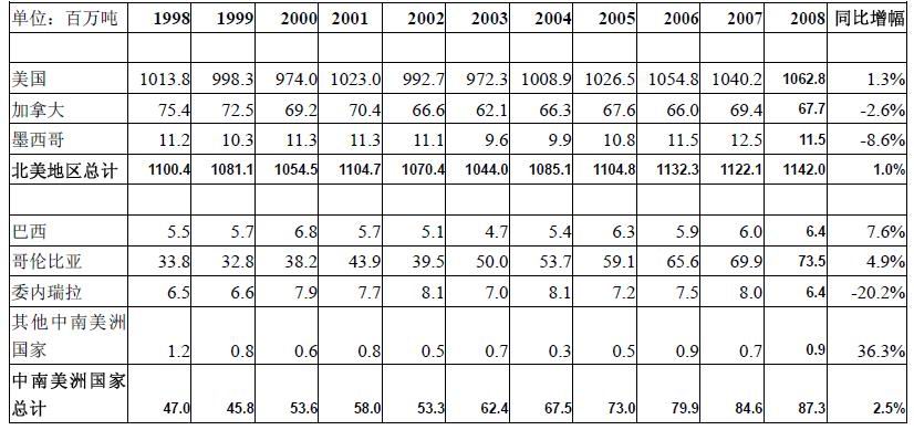 2008年世界各國(guó)煤炭產(chǎn)量(百萬噸)