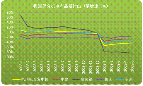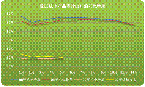 2008年我國機電產(chǎn)品的整體出口增速強勁,進入4季度后出現(xiàn)疲軟的趨勢,最后以弱勢收官。2009年機電產(chǎn)品出口形勢較之08年出現(xiàn)了天昂之別,同比保持20%的負增長。分析認為:機電出口訂單下降的主要原因,一是國際上對高價商品的購買力下降;二是國外市場正在去庫存,對新產(chǎn)品的采購下降,另部分已經(jīng)完成庫存消化的企業(yè)也盡量減少了備貨量。
