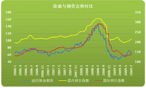 隨著國際金融期貨領域的高速發(fā)展,人們對于期貨市場價格發(fā)現(xiàn)功能的頂禮膜拜,導致其影響力的進一步延伸。近幾年來,鋼鐵市場行情走勢緊隨原油期貨市場,與之產(chǎn)生了高度的關聯(lián)性。尤其是今年上半年在原油的金融屬性在主導價格時,國際鋼鐵市場也出現(xiàn)了一波逆基本面的跟漲行情,市場的通脹預期也真切的表現(xiàn)在鋼鐵產(chǎn)業(yè)。