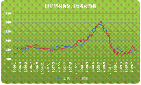 通過計算發(fā)現(xiàn),將原油價格向后移四周則可以得到與國際鋼價最高的相關性。因此我們可以初步判斷,鋼價走勢一定程度上可以參照四周前的原油價格。根據(jù)此項關聯(lián)測算國際鋼價走勢如下圖。從測算的鋼價走勢來看,7月末以及8月份國際鋼價面臨一股較大的上升阻力。介于國內(nèi)外鋼價的高度相關性,將這種趨勢映射在國內(nèi)鋼價后期市場的可能性值得關注的!