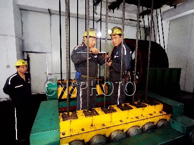 9月16日,在安徽淮北礦業(yè)集團臨渙煤電公司主井口,技術人員監(jiān)測PLC提升系統(tǒng)運行數據。當日,具有世界先進水平、國內首臺礦井提升機HLB型感力機械手捕繩式防滑溜車保護裝置正式投入運行。該系統(tǒng)采用微芯片電腦、感應控制器聯(lián)合控制,絞車房控制系統(tǒng)直接監(jiān)控礦井罐籠運行情況,一旦出現滑繩、溜車狀況,系統(tǒng)PLC進入自動控制狀態(tài),使感力機械手16根鋼絲繩5秒鐘內產生390KN控制力,直至罐籠緩慢安全停穩(wěn)。該系統(tǒng)有中國礦業(yè)大學、淮北礦業(yè)集團聯(lián)合研制,由國家安全局、國家煤炭技術學會共同進行為期一年的試驗合格后,正式投入生產,同時填補了國內該項科研空白。