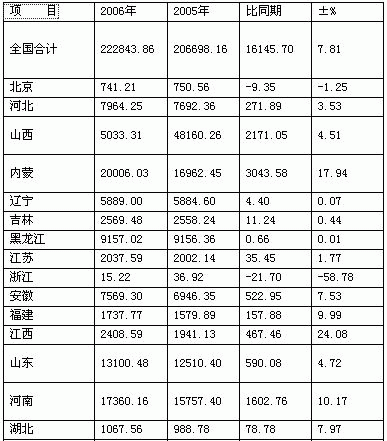 2005-2006年度全國(guó)煤炭銷售量完成情況