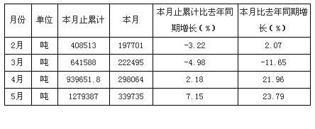 2009年1-5月新疆洗煤產(chǎn)量統(tǒng)計(jì)