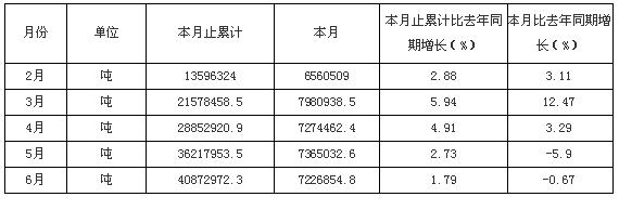 2009年1-6月河北原煤產(chǎn)量統(tǒng)計