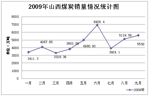 2009年1-9月山西煤炭銷量情況走勢圖