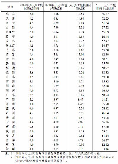 附表:2008 年各省自治區(qū)直轄市節(jié)能目標完成情況