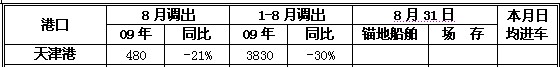 天津港8月份煤炭調(diào)出統(tǒng)計