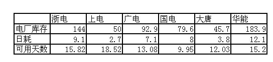 2009年11月03日電廠庫存及日耗情況統(tǒng)計(jì)