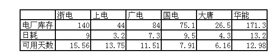 2009年11月14日直供電廠煤炭庫存統(tǒng)計