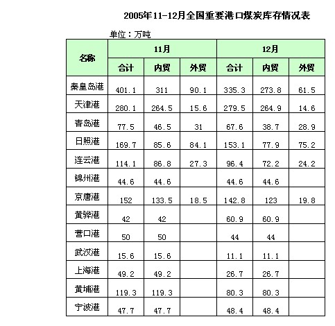 當(dāng)前位置:首頁(yè) -> 行業(yè)統(tǒng)計(jì)數(shù)據(jù) -> 煤炭庫(kù)存 -> 港口庫(kù)存
