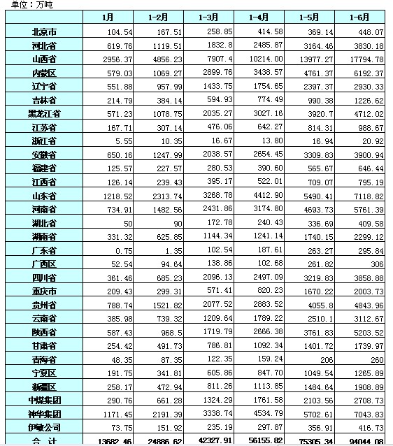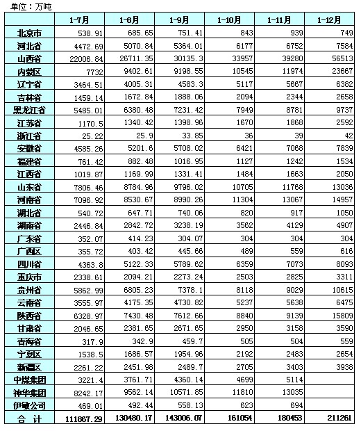 2005年全國工業(yè)原煤產(chǎn)量統(tǒng)計