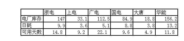 2009年11月25日直供電廠煤炭庫存統(tǒng)計