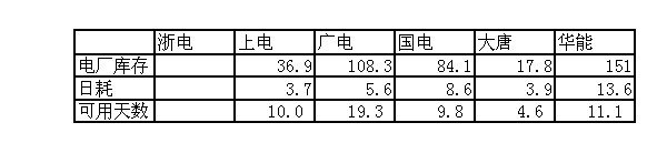 2009年11月29日直供電廠煤炭庫(kù)存統(tǒng)計(jì)
