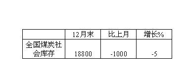 2008年12月全國煤炭社會庫存統(tǒng)計
