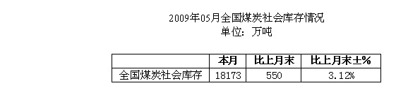 2009年5月全國煤炭社會(huì)庫存統(tǒng)計(jì)
