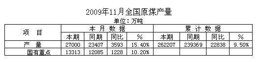 2009年1-11月份我國各類煤礦生產(chǎn)情況統(tǒng)計