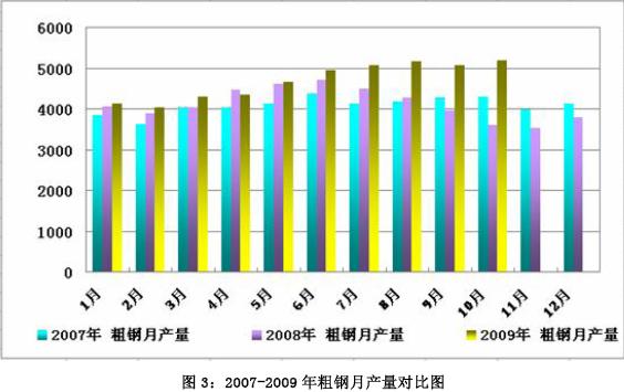 三、09 年1-10 月份中國(guó)粗鋼產(chǎn)量4.16 億噸同比減少2.4%