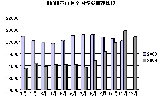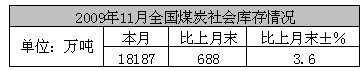 2009年11月全國煤炭社會庫存統(tǒng)計(jì)