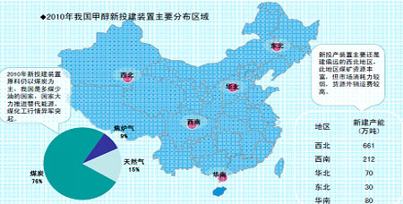 圖為2010年我國(guó)甲醇新投建裝置主要分布區(qū)域圖