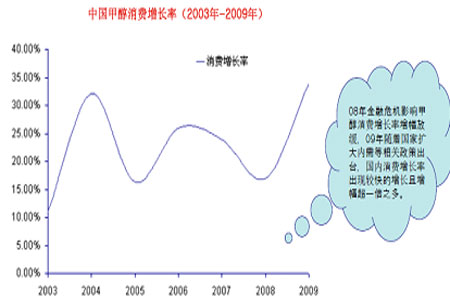 2、預(yù)計(jì)2010年國(guó)內(nèi)甲醇需求增長(zhǎng)率為18-25%。