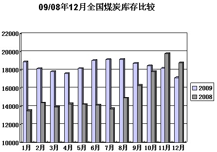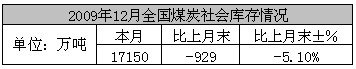 2009年12月全國煤炭社會(huì)庫存統(tǒng)計(jì)