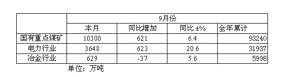 2008年9月我國(guó)煤炭銷量情況統(tǒng)計(jì)