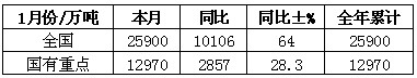 2010年1月我國煤炭銷量情況統(tǒng)計