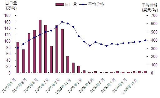 2009年中國焦炭出口趨勢圖