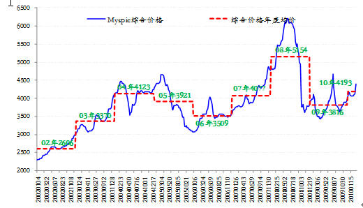 圖1:Myspic綜合價格指數(shù)和綜合年度均價