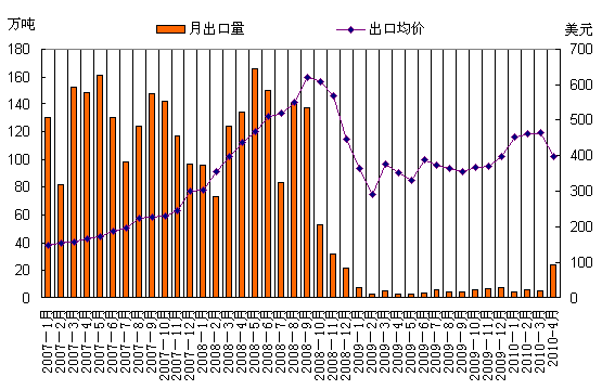 4月份國(guó)內(nèi)鋼材市場(chǎng)沖高回落,因此對(duì)焦炭等原料采購(gòu)積極性不高,盡管受煤價(jià)支撐焦炭?jī)r(jià)格基本沒(méi)有下調(diào),但是成交情況不樂(lè)觀,滯銷嚴(yán)重,出口意向漸濃。另外,4月份國(guó)際鋼材市場(chǎng)回暖,歐盟27國(guó)粗鋼產(chǎn)量為1542萬(wàn)噸,同比增長(zhǎng)64%,環(huán)比下降0.8%;獨(dú)聯(lián)體粗鋼產(chǎn)量為925萬(wàn)噸,同比增長(zhǎng)28%,環(huán)比增長(zhǎng)0.4%,因此焦炭需求量較大。同時(shí),國(guó)際煉焦煤價(jià)格也相對(duì)較高,澳大利亞主焦CIF價(jià)230美元左右,高成本支撐國(guó)際焦炭?jī)r(jià)格過(guò)高,因此國(guó)外鋼廠把采購(gòu)目光轉(zhuǎn)向中國(guó),使得中國(guó)焦炭出口領(lǐng)域在蕭條了一年多以后迎來(lái)第一個(gè)春天。