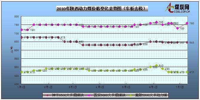 本周陜西動力煤市場運行比較平穩(wěn),正式進入夏季用煤旺季后,價格上出現(xiàn)上行趨勢。神木38塊6300大卡動力煤出礦價470元/噸(只帶煤檢票),5500大卡沫煤出礦不含稅價360元/噸;銅川5200大卡出礦含稅價500元/噸,西安6500大卡38塊煤貨場不含稅價730元/噸,榆林6000大卡沫煤西安貨場不含稅價620元/噸,黃陵5000大卡以上的電煤坑口不含稅價470元/噸。