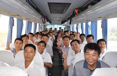 國投新集二礦在企業(yè)管理中,注重以人為本,以職工的利益為出發(fā)點(diǎn),全方位的創(chuàng)造良好的外部條件,來切實(shí)維護(hù)職工權(quán)益,關(guān)注職工的身心健康。針對(duì)夏季高溫時(shí)節(jié),組織生產(chǎn)一線職工到連云港、青島等地集體休養(yǎng),使廣大職工充分感受到企業(yè)的關(guān)懷。圖為整裝待發(fā)的外出休養(yǎng)職工。