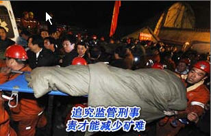 怎樣才能遏制礦難的發(fā)生?在我看來(lái),應(yīng)該出臺(tái)這樣的規(guī)定:發(fā)生礦難就追究監(jiān)管部門(mén)領(lǐng)導(dǎo)的刑事責(zé)任。死30人判10年,死50人判無(wú)期,死100人以上判死刑,而且立即執(zhí)行。如果執(zhí)行這樣的規(guī)定,我相信中國(guó)的礦難,將會(huì)減少百份之九十以上。