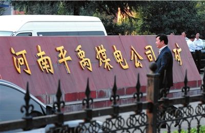 10月17日,一名工作人員從河南平禹煤電公司四礦大門口經(jīng)過。 新華社發(fā)
