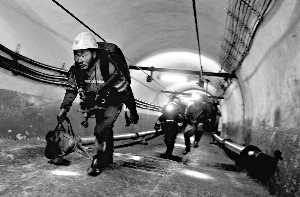 礦山救護(hù)人員返回出事礦井巷道井口(10月16日攝)。河南平禹礦難遇難人數(shù)已升至32人,尚有5人下落不明。新華社發(fā)