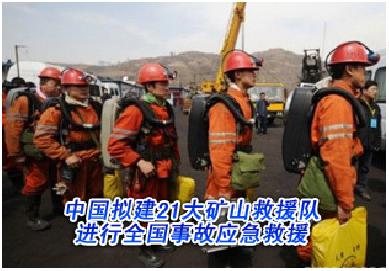 根據(jù)《規(guī)劃》,十二五期間,我國擬建立21個(gè)礦山救援隊(duì),進(jìn)行全國范圍內(nèi)的礦山事故應(yīng)急救援。
