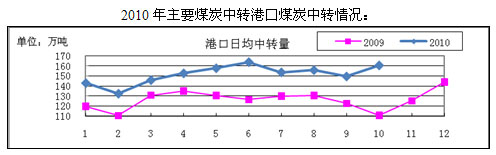 10月份,主要港口共發(fā)運(yùn)煤炭4983萬(wàn)噸,日均完成161萬(wàn)噸,比9月份日均(150萬(wàn)噸)增加了11萬(wàn)噸,上升了7.4%;同比增加了1547 萬(wàn)噸,增長(zhǎng)了45%,其中內(nèi)貿(mào)煤炭發(fā)運(yùn)完成4868萬(wàn)噸,同比增加了1604萬(wàn)噸,增長(zhǎng)了49.1%;外貿(mào)煤炭發(fā)運(yùn)完成114萬(wàn)噸,同比減少了57萬(wàn)噸,下降33.3%。
