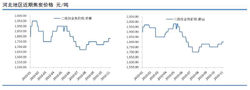 本周國(guó)內(nèi)焦炭市場(chǎng)運(yùn)行良好,成交順暢。目前國(guó)內(nèi)一級(jí)冶金焦平均價(jià)格在1900-1950元/噸;二級(jí)冶金焦平均價(jià)格在1750-1850元/噸。由于后期節(jié)能減排將要結(jié)束,國(guó)內(nèi)眾多企業(yè)盼望復(fù)工時(shí)刻到來(lái),對(duì)焦炭的采購(gòu)量較之前有較大幅度的增長(zhǎng)。同時(shí),明年鐵礦石的價(jià)格上漲,也為下游鋼材價(jià)格提供了有力的拉動(dòng)。綜合以上兩個(gè)重要因素,也為國(guó)內(nèi)焦炭?jī)r(jià)格提供了有力的支撐。