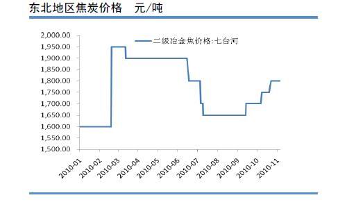 東北地區(qū):本周東北地區(qū)焦炭市場(chǎng)較穩(wěn)運(yùn)行,焦炭?jī)r(jià)格稍漲,主要是由于冬季電廠儲(chǔ)煤以及民用煤的快速增加導(dǎo)致煤炭偏緊,給焦炭造成更大的成本壓力所致,F(xiàn)黑龍江地區(qū)二級(jí)冶金焦主流出廠報(bào)價(jià)1850元;營(yíng)口地區(qū)二級(jí)焦報(bào)價(jià)1850-1900元;現(xiàn)鞍鋼準(zhǔn)一級(jí)冶金焦采購(gòu)到廠價(jià)2060元;北臺(tái)鋼鐵二級(jí)焦采購(gòu)到廠1900-1950元。鋼廠方面稱東北地區(qū)受節(jié)能減排拉閘限電影響較小,鋼鐵企業(yè)生產(chǎn)穩(wěn)步進(jìn)行,但目前鋼材市場(chǎng)疲軟,成交不佳,目前焦炭采購(gòu)價(jià)格上漲空間不大,后期煤焦市場(chǎng)依然較穩(wěn)運(yùn)行為主。