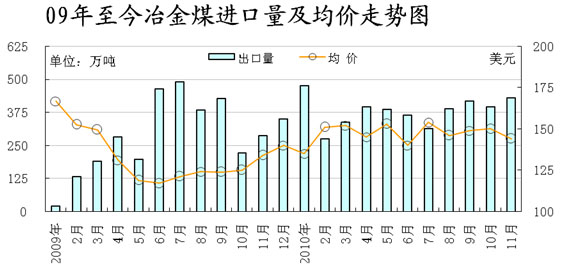 從海關(guān)數(shù)據(jù)獲悉:(如下圖所示)中國(guó)冶金煤數(shù)量呈波動(dòng)性上漲態(tài)勢(shì)。2008年中國(guó)冶金煤進(jìn)口數(shù)量?jī)H為685萬(wàn)噸;隨著金融危機(jī)來(lái)臨,2009年中國(guó)冶金煤累計(jì)進(jìn)口數(shù)量達(dá)到3448萬(wàn)噸,增幅達(dá)到5倍;2010年我國(guó)冶金煤預(yù)測(cè)數(shù)據(jù)將達(dá)到4500萬(wàn)噸。可見(jiàn)我國(guó)冶金煤進(jìn)口市場(chǎng)呈現(xiàn)價(jià)格上揚(yáng)、數(shù)量猛增的趨勢(shì)。