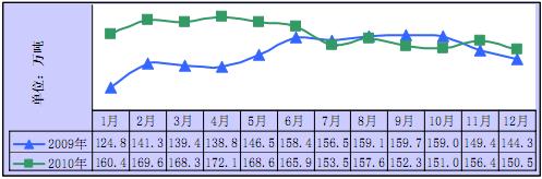 2010 年全年累計,生鐵、粗鋼和鋼材產(chǎn)量分別為 5.90 億噸、6.27 億噸和 7.96 億噸,同比分別增長 7.4%、9.3%和 14.7%,增幅分別比 2009 年回落 8.5 個百分點、4.2 個百分點和3.8 個百分點。