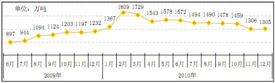 據(jù)印度國家礦業(yè)開發(fā)公司一位負責人透露,該公司出口鐵礦石價格將從 2011 年 1 月起上調(diào) 3%,該價格將適用整個第一季度,但并未正式公布,隨后又有報道稱,印度政府計劃在 2011 年 4 月 1 日開始的 2011-2012 財政年度對鐵礦石出口統(tǒng)一加征 20%的出口關(guān)稅,將進一步推高國際礦價。另據(jù)路透社報道,巴西礦業(yè)巨頭淡水河谷 2011 年 1 月料將季度鐵礦石合約價格提高 8.8%,至每噸 149.20 美元,這一漲幅是根據(jù)上期(2010 年 9 月 1 日-11 月30 日)普氏指數(shù)的漲幅確定的。2011 年第一季度鐵礦石價格上漲已成定局。正是基于對鐵礦石漲價的預(yù)期,鋼廠、貿(mào)易商早已做好了囤貨準備,2010 年 11 月鐵礦石進口量較 10 月份增長 25.5%,至 5738 萬噸,12 月進口量繼續(xù)微量增長,達到 5808 萬噸,國內(nèi)鐵礦石庫存持續(xù)上升, 據(jù)蘭格鋼鐵網(wǎng)數(shù)據(jù), 截至 1 月7 日, 全國 19 個主要港口鐵礦石庫存量升至 8090萬噸。進口礦的激增導(dǎo)致鐵礦石市場持續(xù)追漲,短期內(nèi)推高了鋼價,然而,2011 年鋼鐵需求具有很大的不確定性,且第一季度是用鋼淡季,鋼廠轉(zhuǎn)嫁成本壓力可謂困難重重。