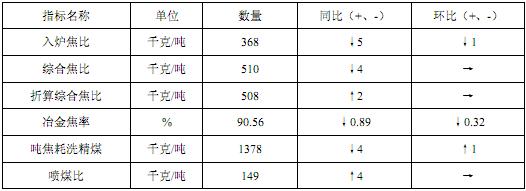 與前 10 個月比,1-11 月大中型鋼鐵企業(yè)煉鐵工序中,各項主要技經(jīng)指標基本穩(wěn)定,入爐焦比略有上升,煉焦工序中,冶金焦率下降,噸焦耗洗精煤上升。