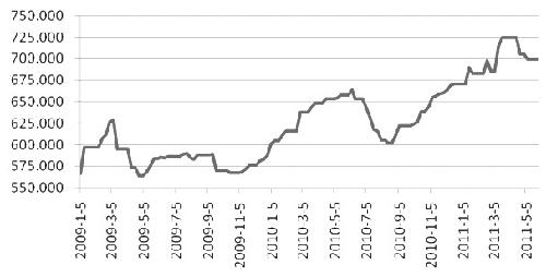 2009—2011年國內(nèi)生鐵產(chǎn)量