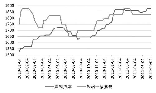 焦炭原料成本與焦炭價(jià)格比較