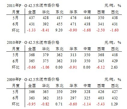 2009年,西部地區(qū)是行業(yè)的最大收益者,西南、西北雙雙跨入400元/噸的門檻,2010年西南落伍了,只有西北的價格在400元/噸之上 ,2011年仍保持在這一位置。但欣喜地看到今年華東、東北、中南也進(jìn)入了400元/噸這一”家庭”,尤其是華東和中南地區(qū)的進(jìn)入尤為重要,兩個區(qū)域的市場容量占到全國的60%以上,使全國的水泥價格站到了400元/噸的”起跑線”,這對未來水泥產(chǎn)業(yè)的走勢影響舉足輕重。
