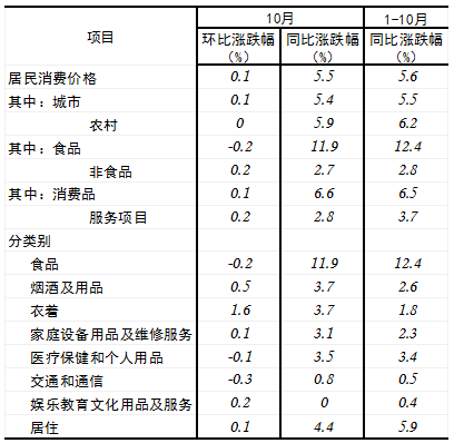 據(jù)測算,在10月份5.5%的漲幅中,去年價格上漲的翹尾因素近1.5個百分點,今年新漲價因素約為4.04個百分點。