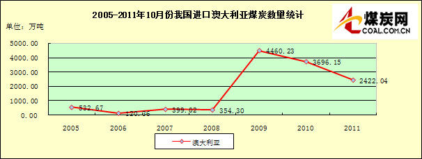 2005-2011年10月份我國進口澳大利亞煤炭數(shù)量走勢統(tǒng)計