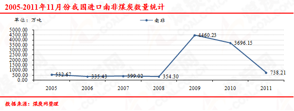 2005-2011年11月份我國(guó)進(jìn)口南非煤炭數(shù)量走勢(shì)統(tǒng)計(jì)
