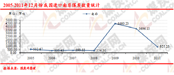 2005-2011年12月份我國進(jìn)口南非煤炭數(shù)量走勢統(tǒng)計(jì)